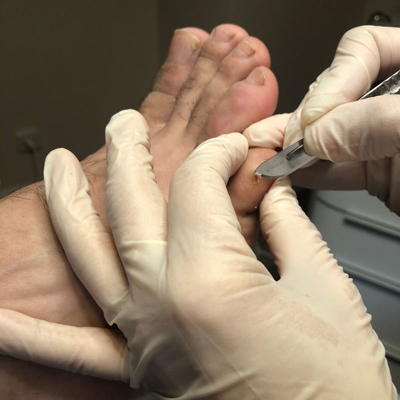 Diese Behandlung umfasst das gesamte Spektrum der medizinischen Fußpflege, wozu der fachgerechte Nagelschnitt und die schonende Hornhautabtragung gehören.